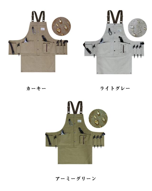 | デザインと機能性を備えた多機能キャンバスエプロン ポケットがたっぷりあるから、アウトドアやガーデニングなどにおすすめのエプロンです。 前掛けは上向きに固定すれば大きなポケットとして使用可能。 ユニセックスでカラー展開も豊富なので自分らしいキャンプスタイルを楽しんでいただけます。 ご自宅用にはもちろん、新生活を始められる方やDIY好きの方へのプレゼントにもおすすめです。 | |