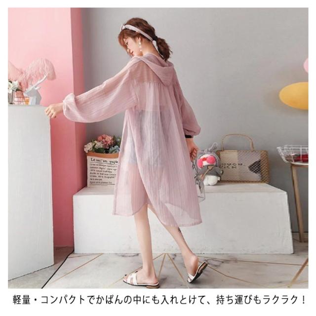 カーディガン ロング UVカット 大きいサイズ カーディガン UVカット シャツ パーカー 薄手 UVカット 羽織 無地 ラッシュガード ゆったり 夏 長袖 体型カバー 通勤 通学 フード付き 前開き シースルー UV対策 紫外線対策 シンプル OL