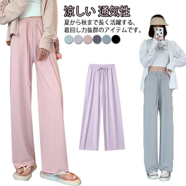 【送料無料】ワイドパンツ ジャージ きれいめ 涼しい ジョガーパンツ 【送料無料】ワイドパンツ ひんやり 接触冷感 通気性 冷感パンツ アイスシルク レディース 接触冷感 レディース 薄手 ハイウエスト リラックスパンツ ボトムス