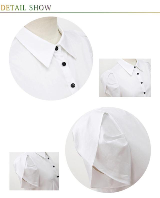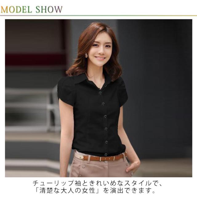 チューリップ袖 パフスリーブ ブラウス シャツ 制服 事務服 ビジネス カジュアル 通勤 OL 半袖 ワイシャツ トップス 無地 白シャツ フォーマル オフィス Yシャツ 襟付き シャツ フレア パフ袖 レディース 大きいサイズ 春 夏 秋 ホワイト ブラック