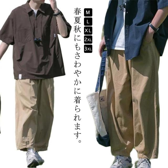 ワイドパンツ トレンド 薄手 夏 無地 ウエストゴム バルーンパンツ メンズ ストリート 韓国ファッション ワイドパンツ シンプル カジュアル おしゃれ カーゴパンツ パンツ ボトムス 男性 大きいサイズ