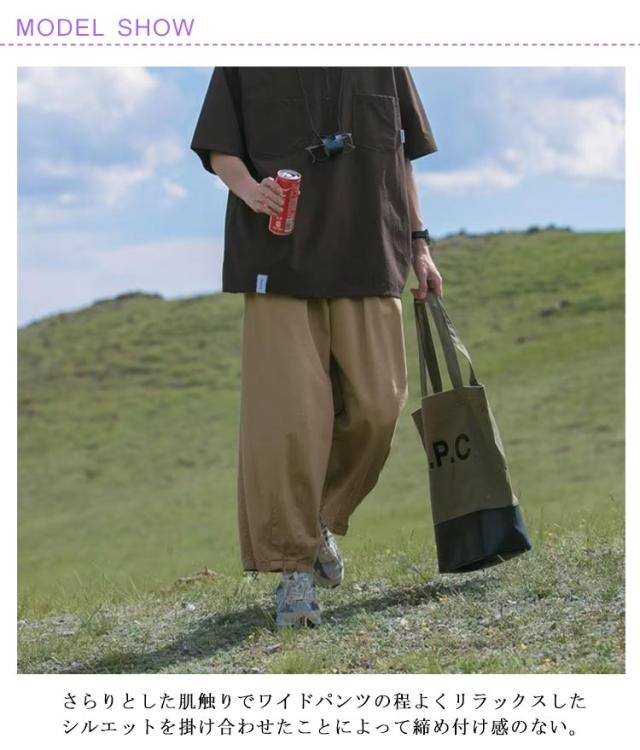 | さらりとした肌触りでワイドパンツの程よくリラックスしたシルエットを掛け合わせたことによって締め付け感のない。 春夏秋にもさわやかに着られます。 ストンとまっすぐに落ちるワイドシルエットが特徴です。 太もも部分やヒップに余裕があり涼しい穿き心地です。 ウエストはゴム仕様、楽に着用できます。 サラッとはきやすいワイドパンツ。 動きやすく、履き心地も良く、窮屈さも全く感じません。 カジュアルな見た目ながらも、無駄な装飾を施さないシンプルなデザインで様々なコーディネートにマッチします。 | |