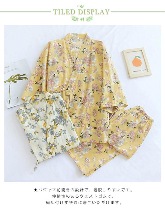 | ★柔らかいガーゼ生地、ゆったり幅で、縛られる感じを与えず快適にリラックスできます。 ★パジャマ前開きの設計で、着脱しやすいです。伸縮性のあるウエストゴムで、締め付けず快適に着ていただけます。 ★肌に優しいガーゼ生地は、吸汗性や通気性に優れており、汗をかいてもサッと吸収してくれて、夜明けまでサラサラです。 ★パジャマだけでなく、ルームウェアや部屋着としてもお使い頂けます。また、お友達やガールフレンドへのプレゼントとしてもオススメです。 | |