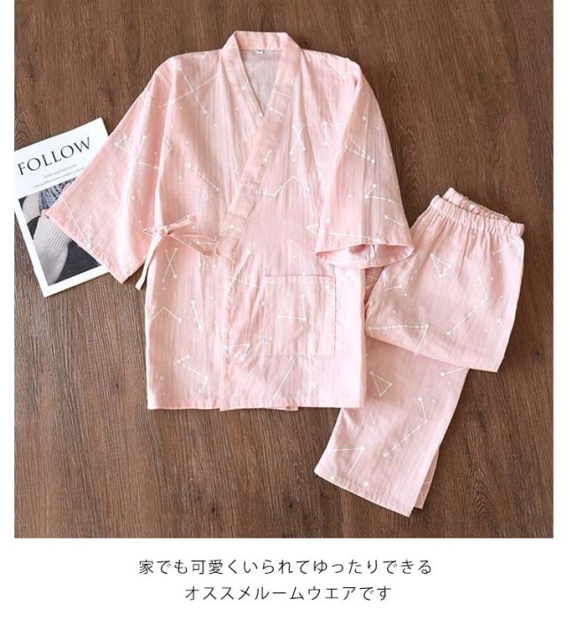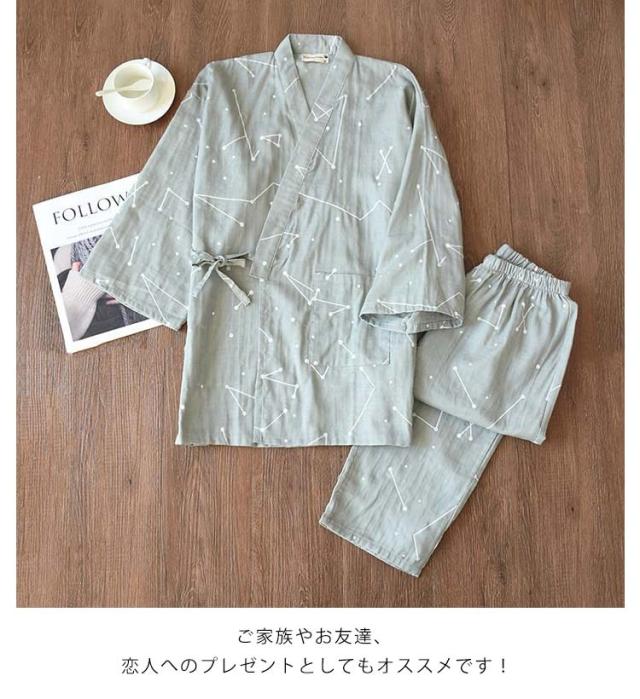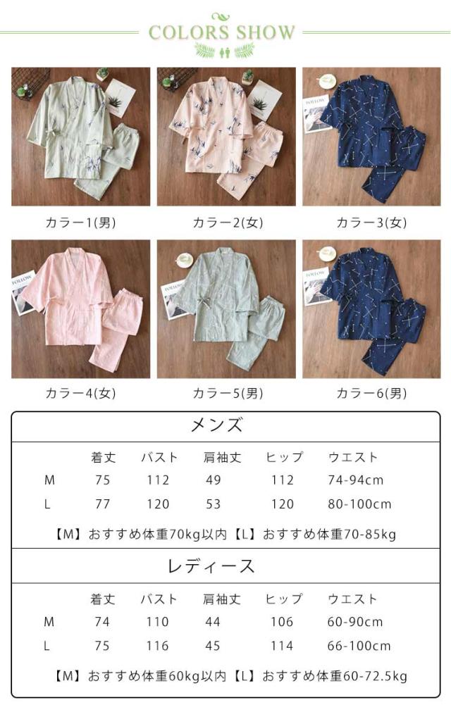 甚平 じんべい 寝巻き パジャマ 長ズボン 男女兼用 七分袖 上下セット セパレートパジャマ ルームウェア 春 カップルペア 甚平 ナイトウエア 夏 浴衣 レディース 綿 甚平寝巻き 二重ガーゼ 肌に優しい 綿 部屋着 和風 着物