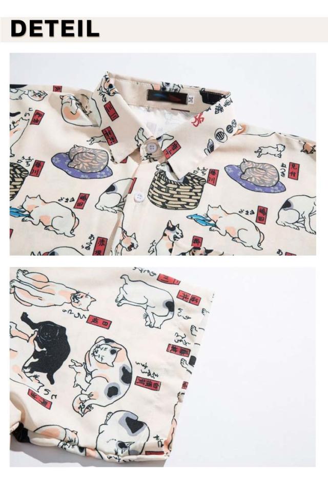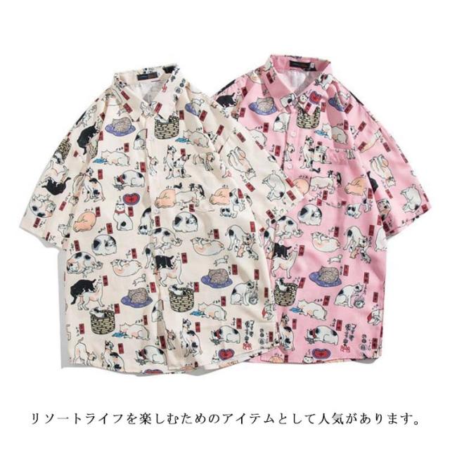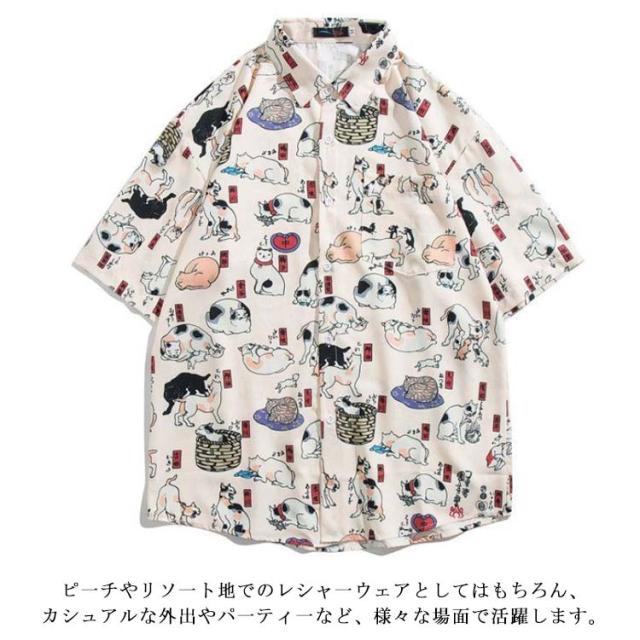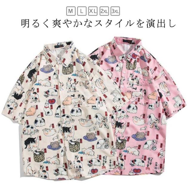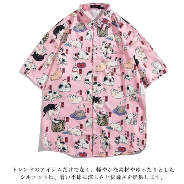 派手 アロハシャツ ねこ シャツ 猫柄 柄シャツ 薄手 おしゃれ 可愛い メンズ シャツ 夏 おもしろ t 猫 カジュアル トップス レディース 柄シャツ 半袖 開襟シャツ ゆったり 涼しい ハワイアン柄 花柄 快適 総柄 夏服 ハワイ リゾート アロハシャツ 沖縄旅行 海