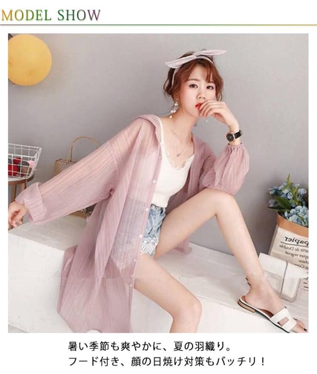 UVカット パーカー カーディガン UVカット 夏 体型カバー シャツ ラッシュガード ロング UVカット 羽織 長袖 カーディガン ゆったり 大きいサイズ レディース 薄手 通勤 通学 フード付き 前開き シースルー UV対策 紫外線対策 シンプル OL