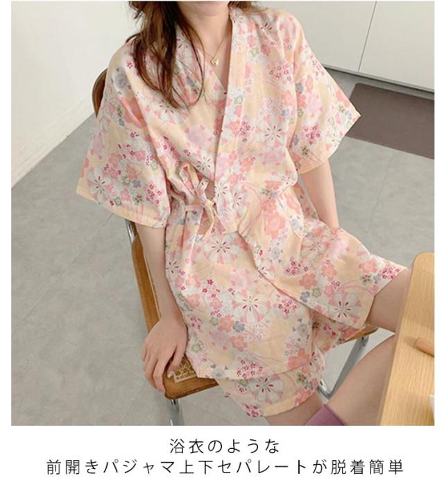 上下セット 和風 パジャマ 大人 寝巻き 和柄 セットアップ 甚平 夏用 レディース 浴衣 ルームウェア じんべい 夏 ショートパンツ 涼しい レディース 半袖 寝間着 部屋着 ルームウェア 着物 館内着 温泉 大人用 女性用 薄手 ゆったり