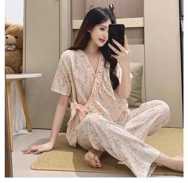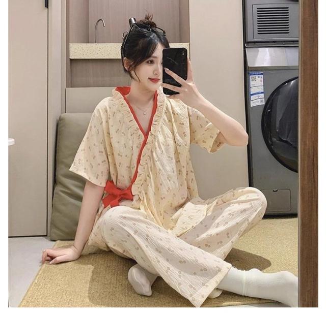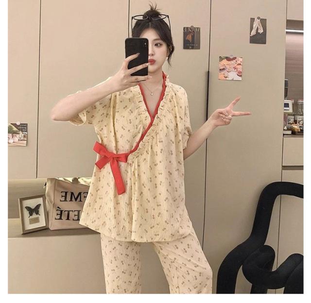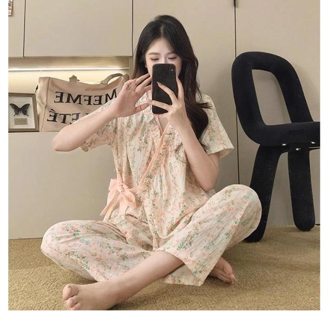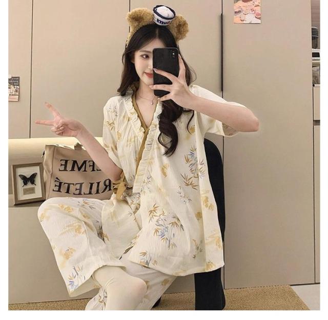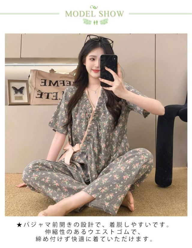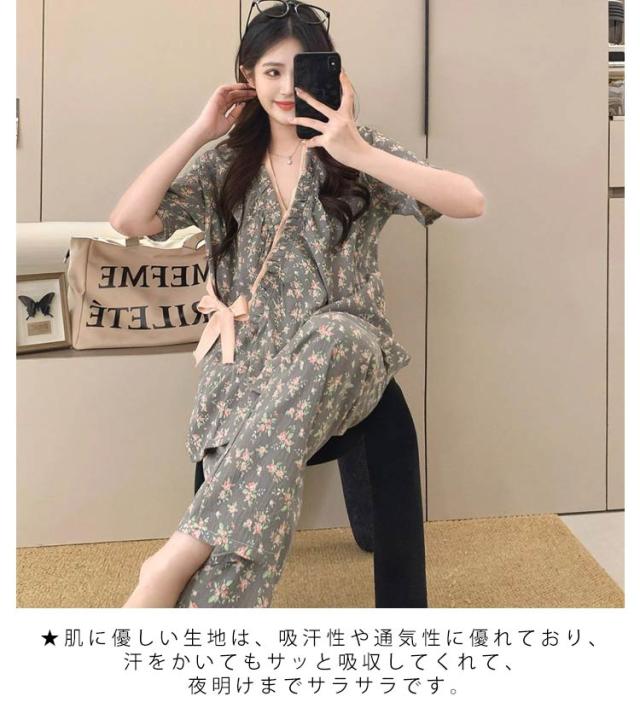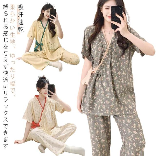 半袖 甚平 ゆったり パジャマ 春 セットアップ 夏 長パン セット 上下セット 大人 浴衣 甚平 お揃い 部屋着 甚平 レディース ルームウェア リボン 秋 2点セット 寝巻き おしゃれ プレゼント ギフト 吸汗 速乾 大きいサイズ 妊娠 着心地良い ゆったり