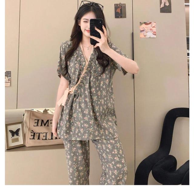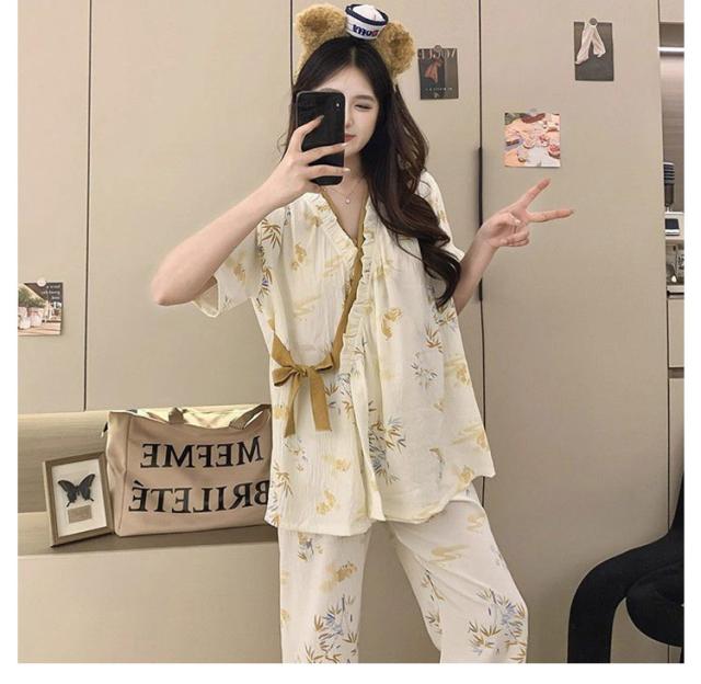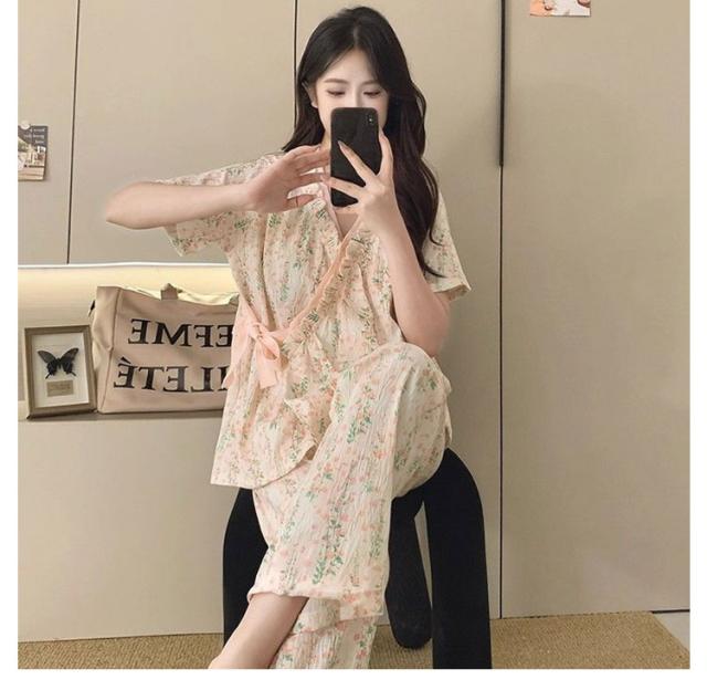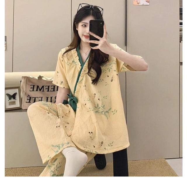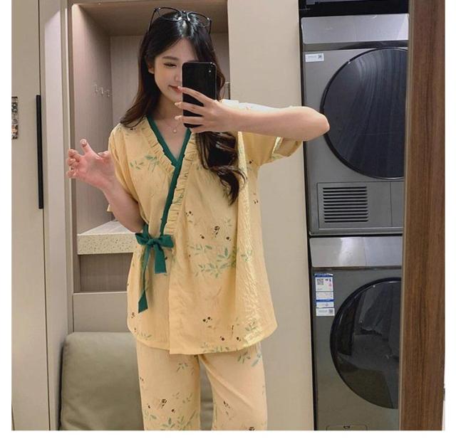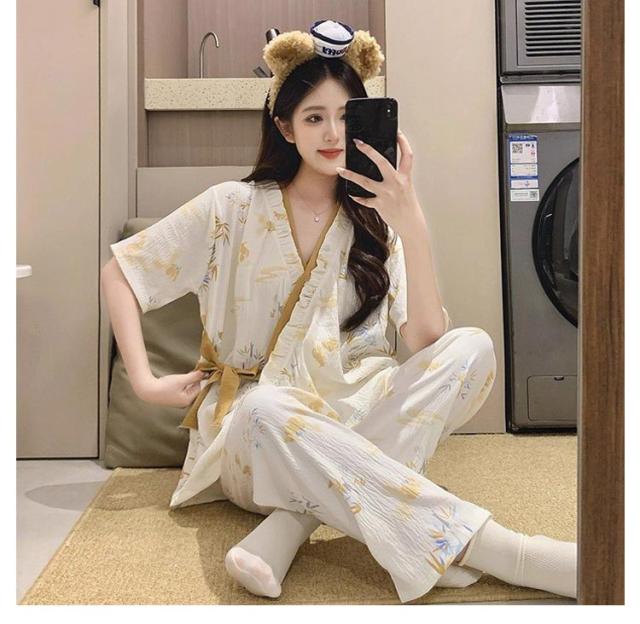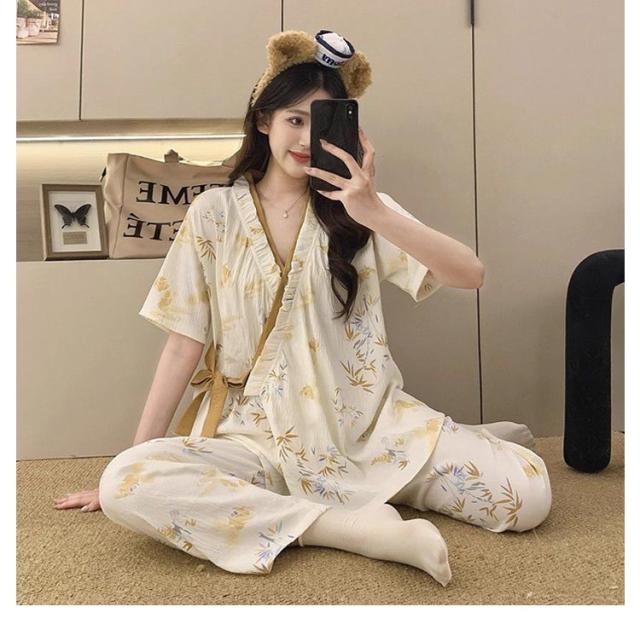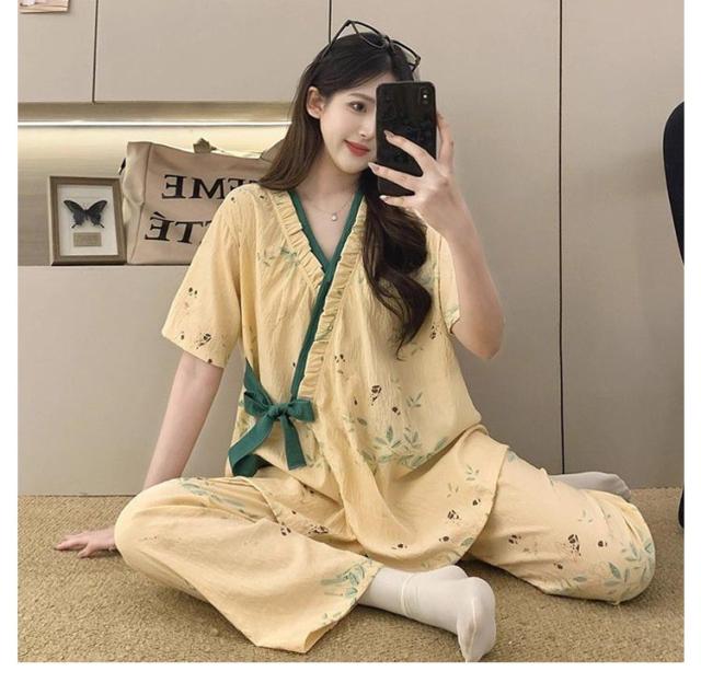 半袖 甚平 ゆったり パジャマ 春 セットアップ 夏 長パン セット 上下セット 大人 浴衣 甚平 お揃い 部屋着 甚平 レディース ルームウェア リボン 秋 2点セット 寝巻き おしゃれ プレゼント ギフト 吸汗 速乾 大きいサイズ 妊娠 着心地良い ゆったり