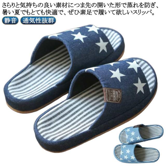 室内履き 洗える 星柄 スリッパ 前開きスリッパ ストライプ ルームシューズ 男女兼用 静音 スリッパ ルームスリッパ 厚底 夏用 来客用 オフィス 春秋 夏