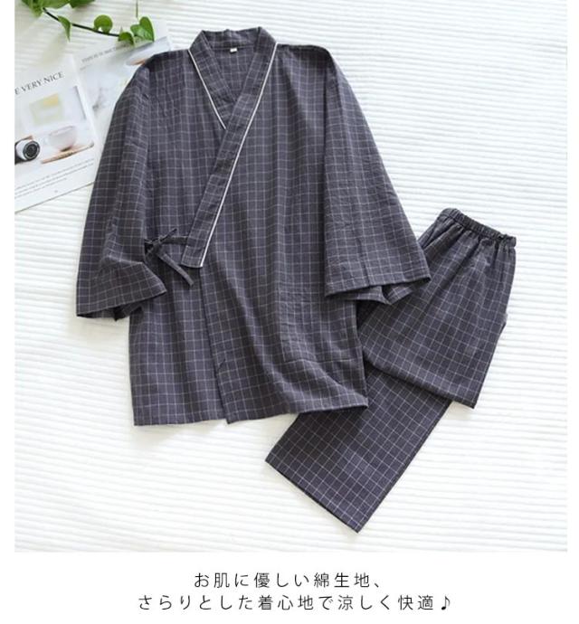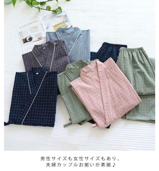 メンズ 浴衣 パジャマ 上下セット 甚平 レディース 春 寝巻き セパレートパジャマ 長ズボン ルームウェア カップルペア 和式 夏 二重ガーゼ 七分袖 綿 甚平 肌に優しい 綿 部屋着 和風 着物 ナイトウエア 送料無料 母の日 義母 ギフト プレゼント 薄手