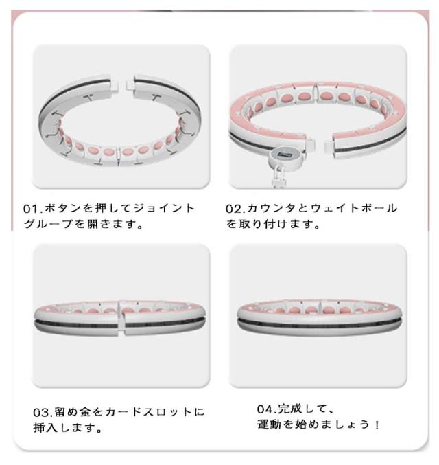 | 組み立て式スマートフラフープ。45-100kg以内!3Dシリカゲルマグネット マッサージフラフープ。 360°環腰マッサージ腰を振り、腰腹脂肪を均一にマッサージする毎日30分で、セクシーな腰を持つことができます。 長時間ぐるぐる回っても腰を痛めない親指のような押しマッサージ。 金属留め具は、 激しい運動をしても破断しない。 腰と腹の脂肪を均一にマッサージし、 簡単に脂肪を振って痩せる。 回転数の運動データをリアルタイムで記録し、運動量を科学的に制御する。 密封式静音軸受は、使用時の滑りがスムーズで、騒音が80%低減されている。ボディスライドレール×精鋼ボールベアリングは、 円と弧の高さが一致している。 01.ボタンを押してジョイント グループを開きます。 02.カウンタとウェイトボール を取り付けます。 03.留め金をカードスロットに挿入します。 04.完成して、運動を始めましょう! | |