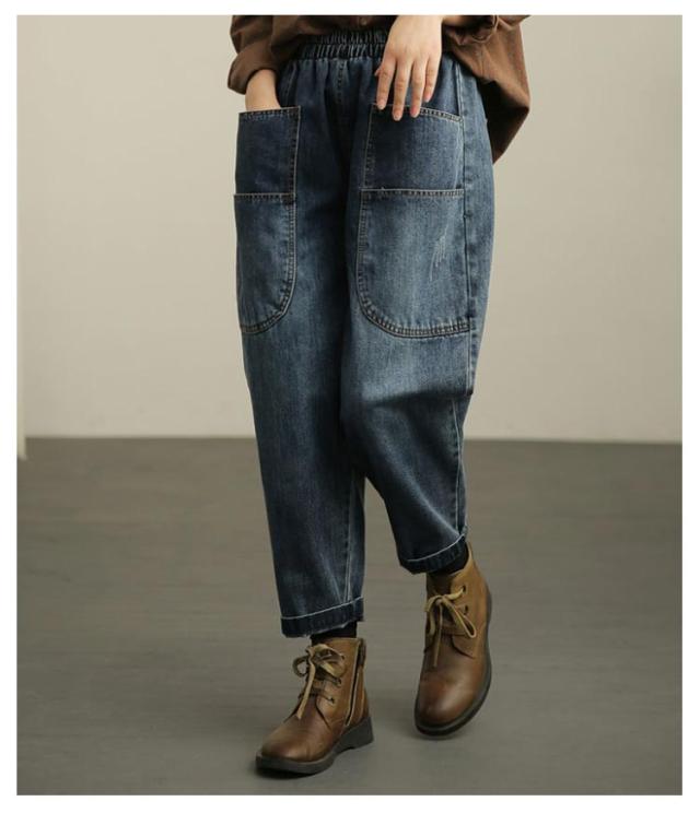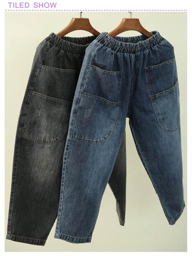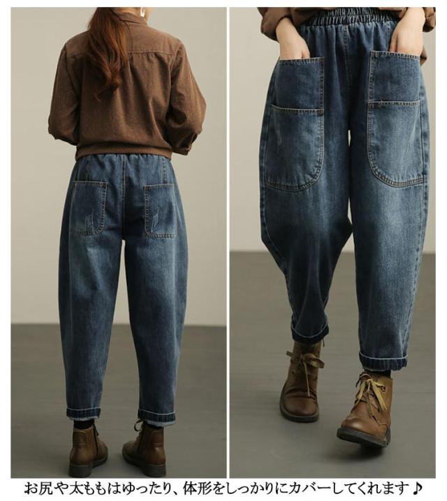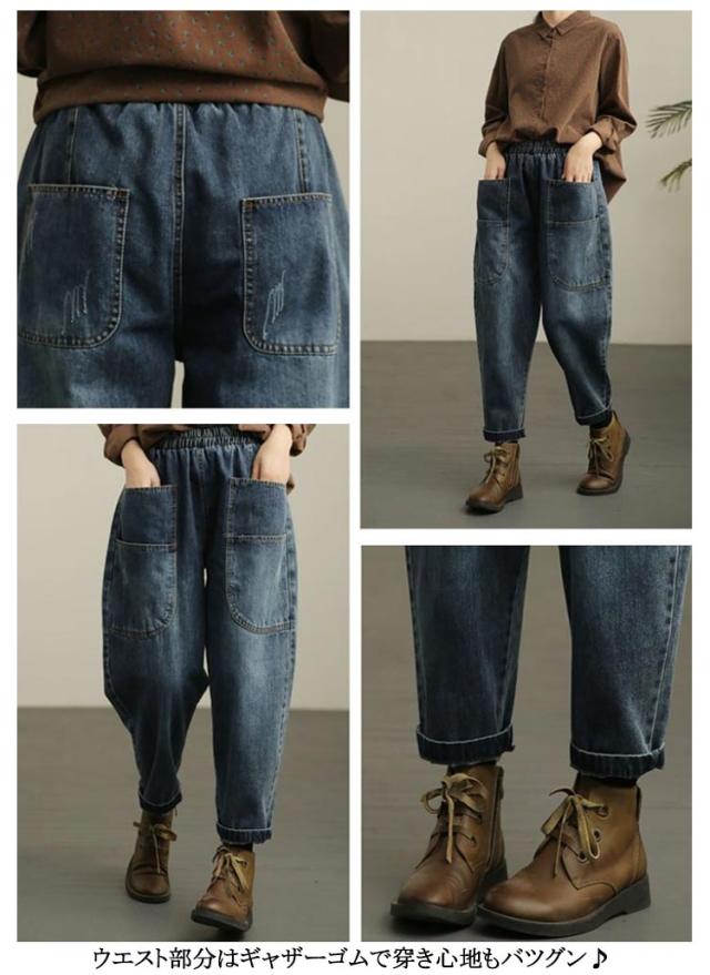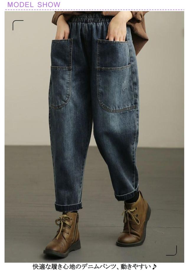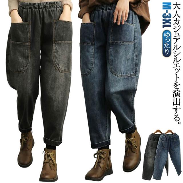 デニムパンツ 大きいサイズ 動きやすい デニムパンツ 無地 ジーンズ デニム ウエストゴム カジュアル サルエルパンツ 春秋 レディース チノパン おしゃれ 森ガール サルエルパンツ ゆるっと可愛い ゆったり 春 秋 体型カバー 大きめ ビッグシルエット 大人女性