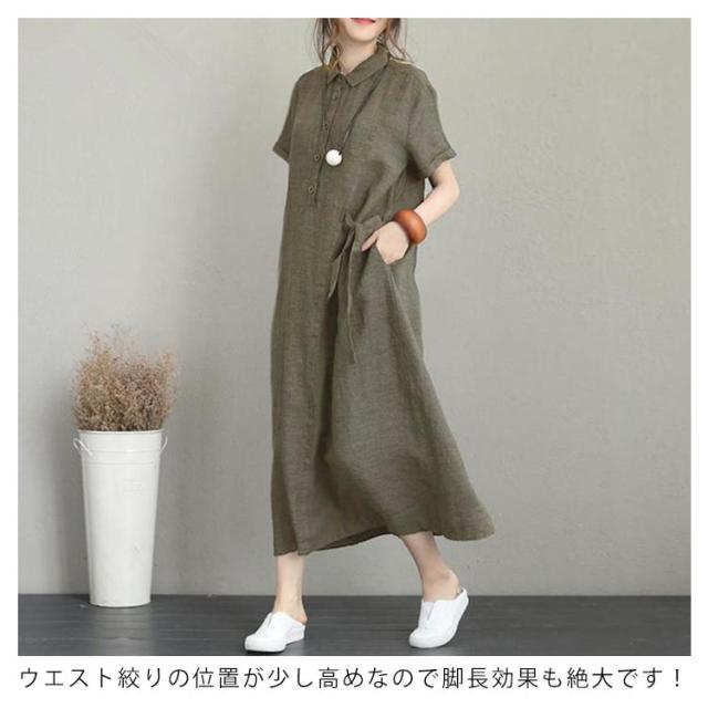 夏 シャツワンピース シャツワンピース 綿麻調 折り襟 リネン風 半袖 レディース ワンピース ゆったり 韓国風 ロングワンピース 通勤 カジュアル 大きいサイズ