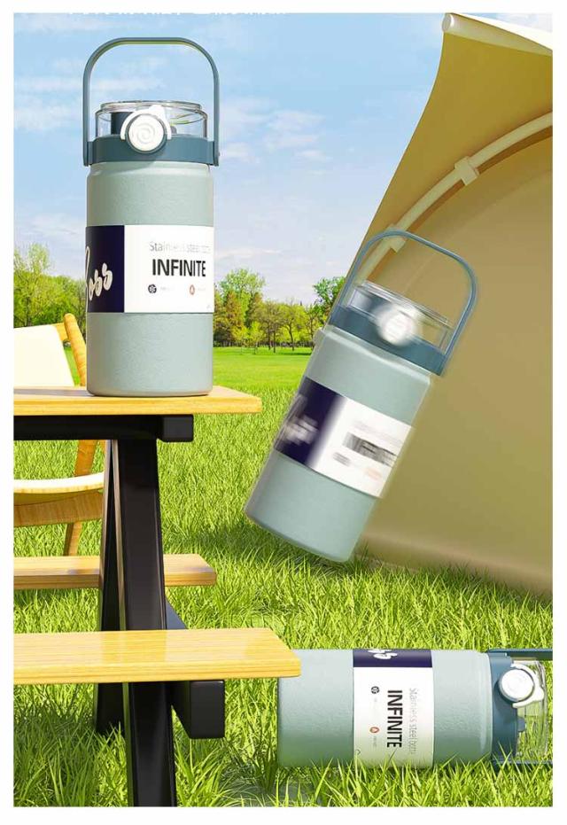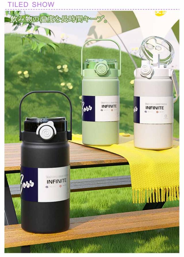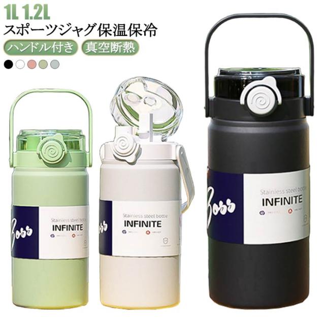 1.2L ストロー付き 1L 1.2L 大人 軽量 ステンレスボトル 直飲み おしゃれ 大容量 保冷 マグボトル 水筒 洗いやすい ハンドル付き 真空断熱 携帯 魔法瓶 スポーツジャグ 保温 キッズ 子供 通勤 アウトドア キャンプ スポーツ 白 ピンク 黒 グリーン