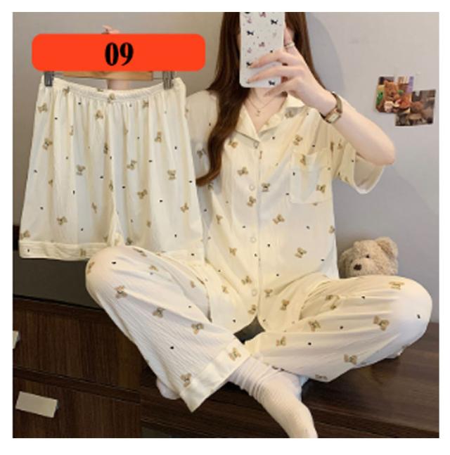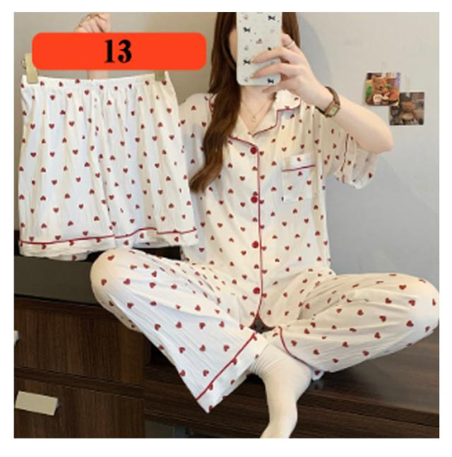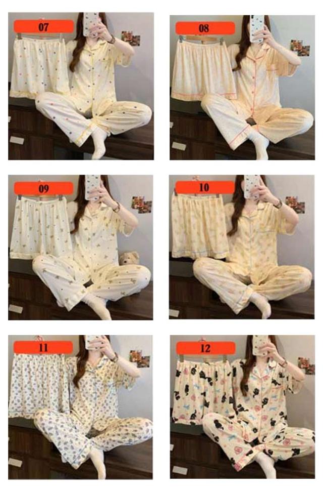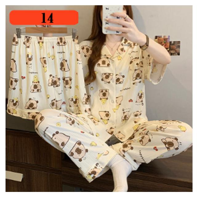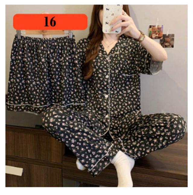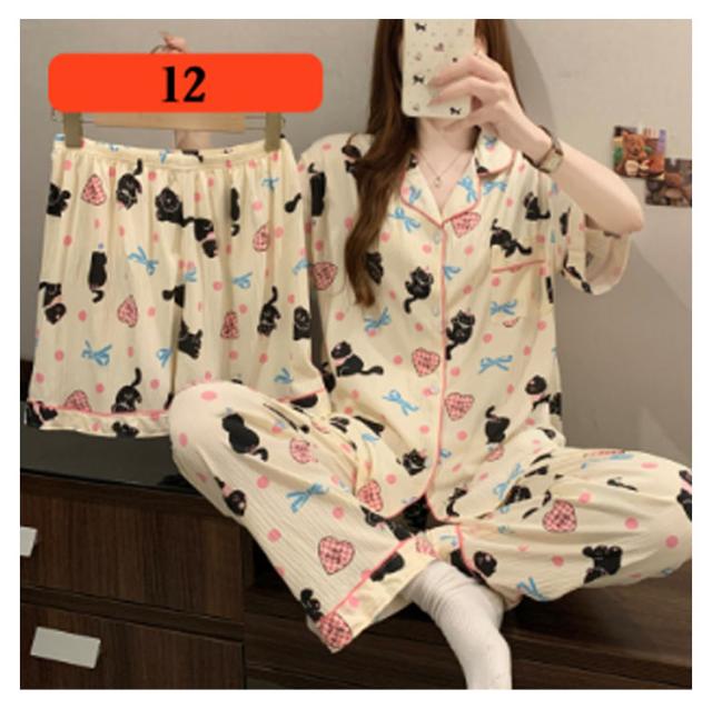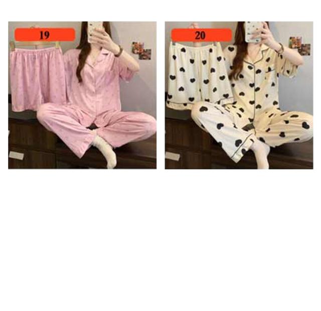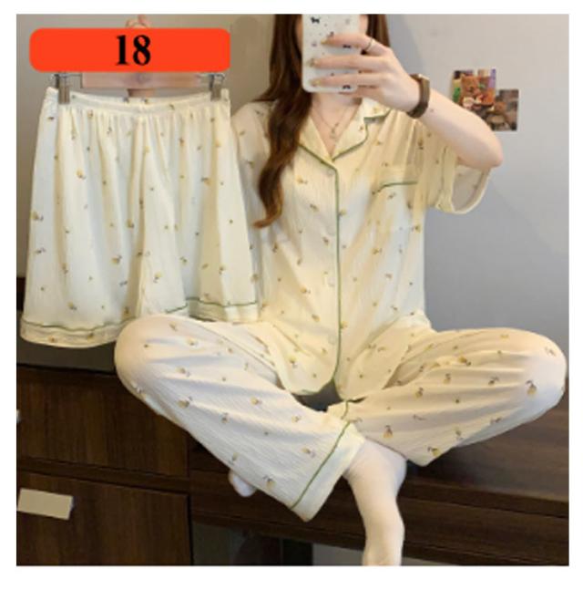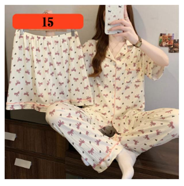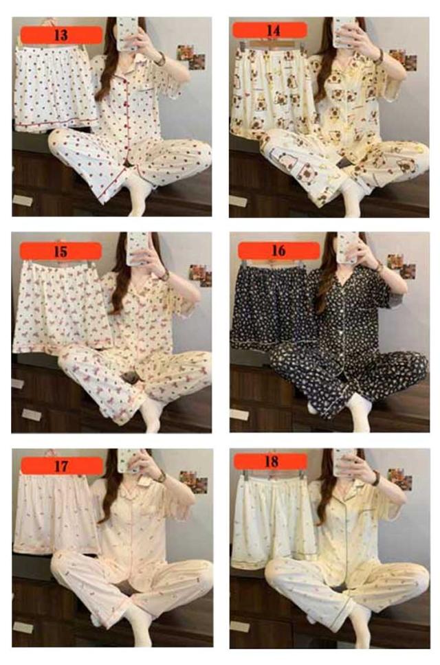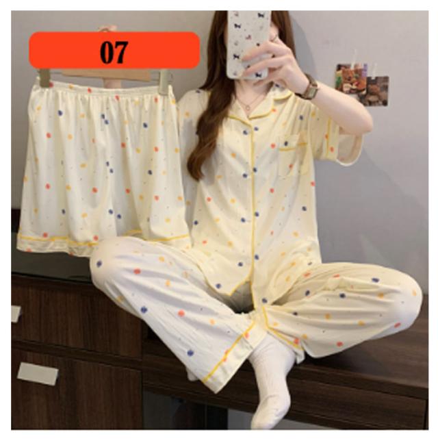 | M-3XL 大人可愛いデザインのパジャマ3点セットです。 前開き前ボタンタイプで着やすいので、授乳や入院などにもおすすめ。 ウエストはゴム仕様なので、たくさん動いてもストレスなく快適に着用いただけます。 おうち時間も可愛く♪夏を涼しく快適に過ごせる着心地抜群なルームウェア。 シンプルな柄、落ち着いた色調でデザインされており、部屋着として、また旅行や入院時にも最適です。 | |