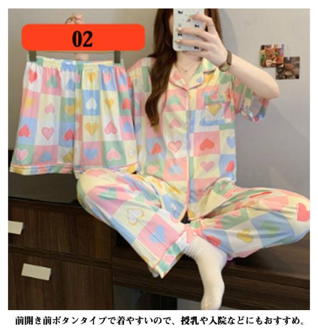 入院着 短パン 前開きパジャマ 長ズボン 可愛い 【半袖 パジャマ 夏 ロングパンツ】 女性 パジャマ 部屋着 ルームウェア プレゼント レディース 柔らかく リラックス おうち ナイトウエア 寝巻き 通気性 春・夏・秋