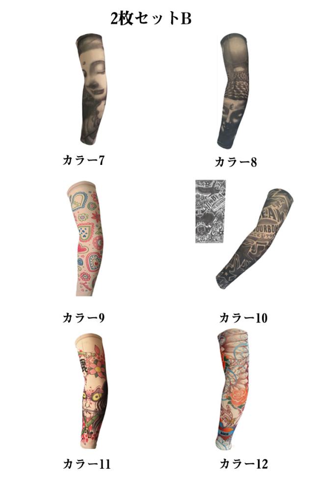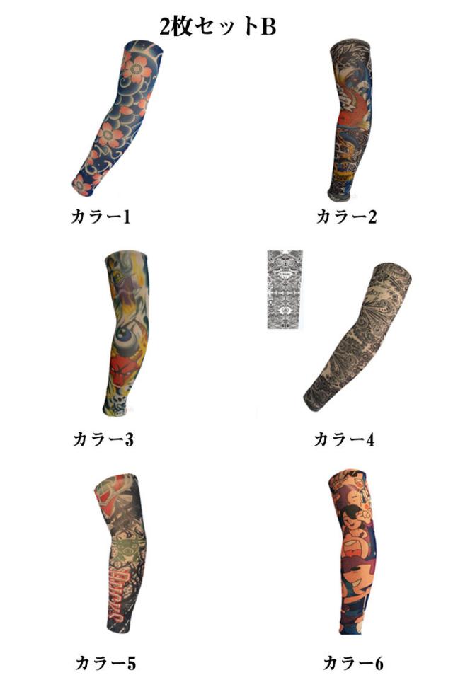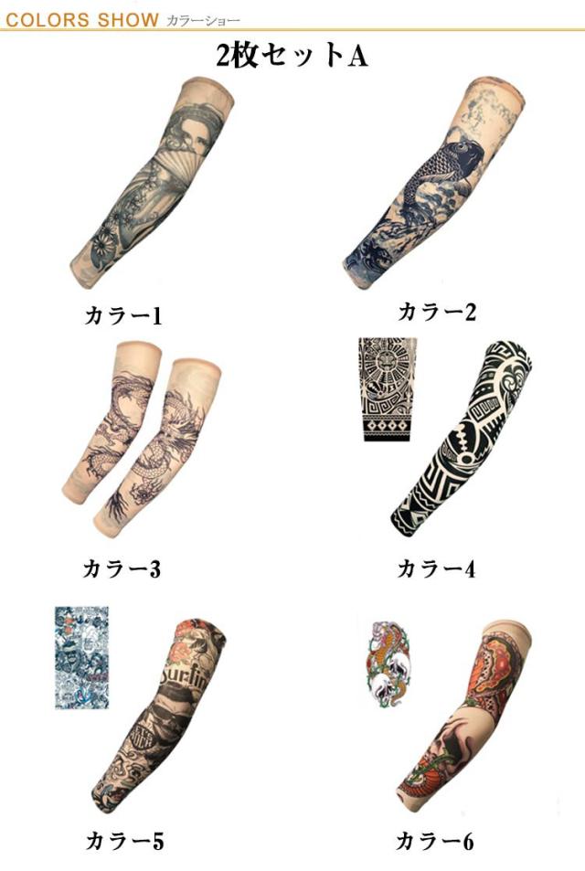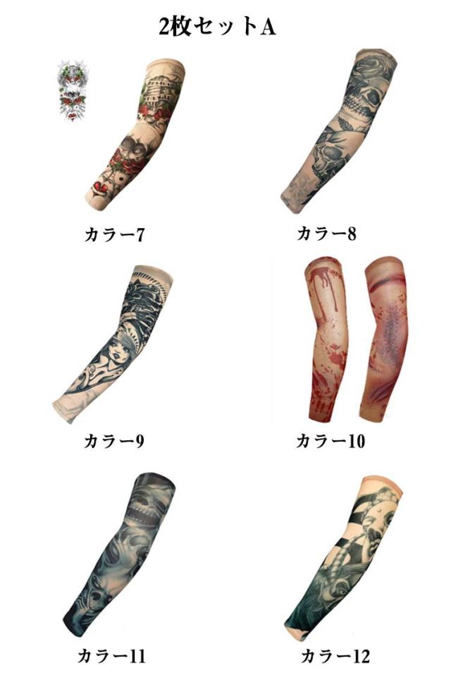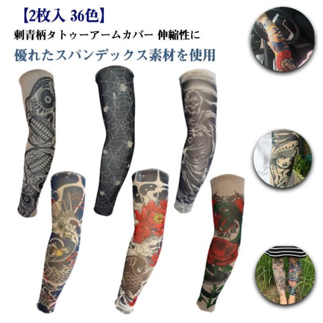 入れ墨 肘サポーター 全36柄! 2枚入 アーム 柄 タトゥースリーブ 女性 全36柄! タトゥー アームカバー カバー uvカット 男性 刺青 紫外線対策 レディース アームウォーマー 煽り運転対策 タトゥー 蛇 般若 龍 肘サポーター リアル 避難 仮装 コスプレ