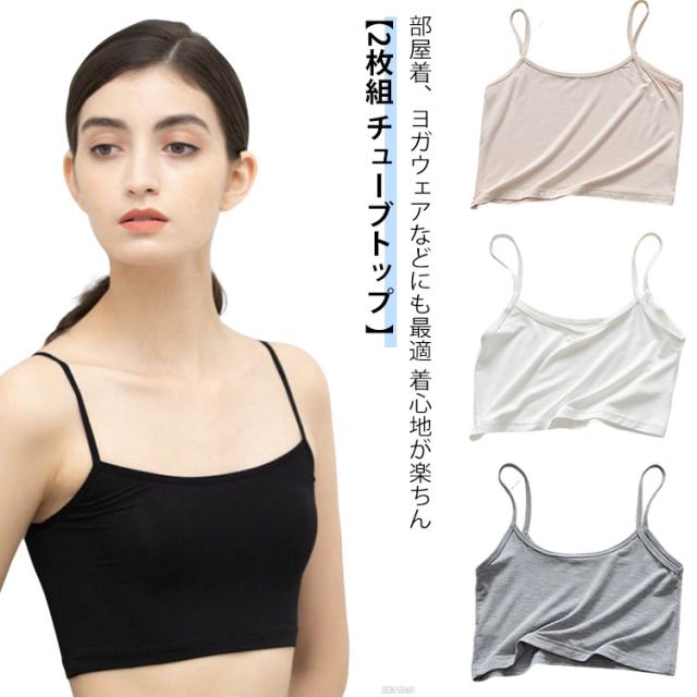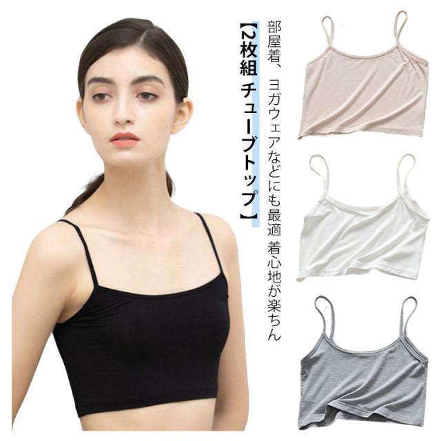 キャミソール チューブトップ タンクトップ レディース 無地 2枚組 2枚組 ブラカバー トップス ミニ ショート丈 へそ出し トップス 重ね着 カジュアル チラ見え防止 インナー きれいめ おしゃれ 部屋着 伸縮 通気 吸汗 薄手