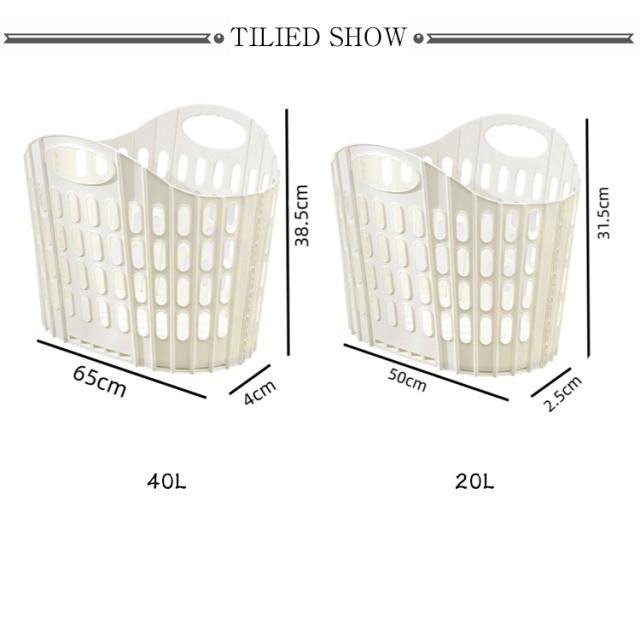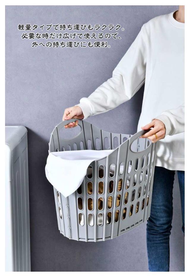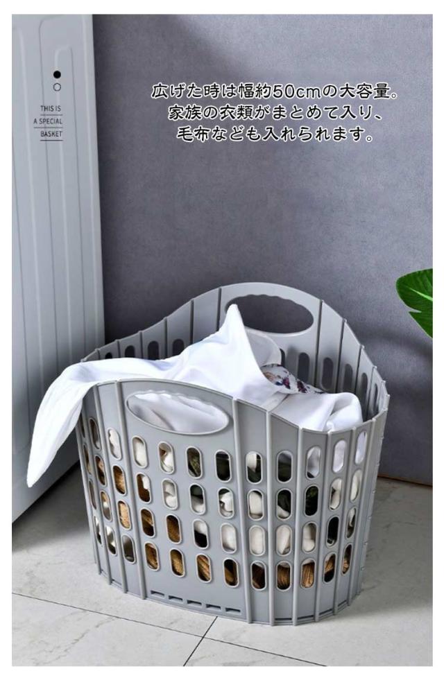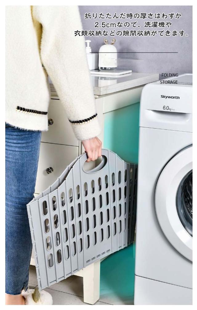 | 折りたためる大きな洗濯カゴ。【20L?40L】 折りたたんだ時の厚さはわずか2.5cmなので、洗濯機や衣類収納などの隙間収納ができます。 広げた時は幅約50cmの大容量。家族の衣類がまとめて入り、毛布なども入れられます。 使うときはバスケットを広げて、カゴ底の手のマークを押し込むだけの簡単仕様。 軽量タイプで持ち運びもラクラク。必要な時だけ広げて使えるので、外への持ち運びにも便利。 車のトランクなどに常備してお買い物かごとして。アウトドア、キャンプでも活躍します。 野菜など食品ストックのカゴとして。ゴミの分別に。 | |