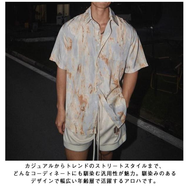 | 柔らかく肌触りの良いポリエステル素材を採用。 快適な通気性も魅力的で見た目、着心地ともに抜群の清涼感を楽しめます。 軽くて動きやすい、着心地が良くて、通気性も抜群、汗を早く吸収して乾燥も早いので夏に快適に過ごせます。 これ一枚だけ着ると炎天下でも涼しかったです。 カジュアルからトレンドのストリートスタイルまで、どんなコーディネートにも馴染む汎用性が魅力。馴染みのあるデザインで幅広い年齢層で活躍するアロハです。 | |