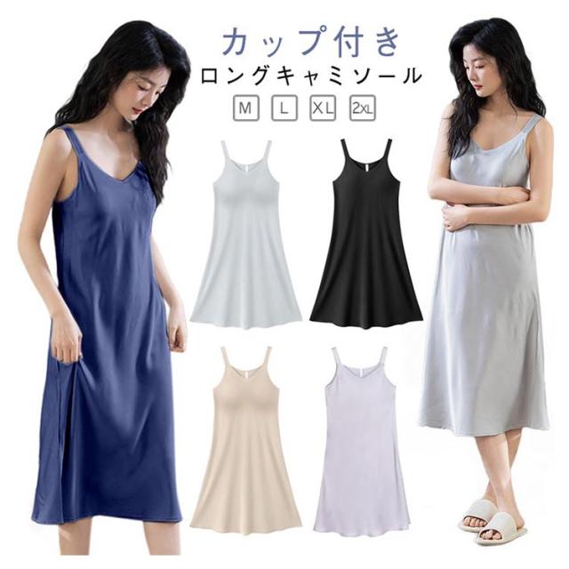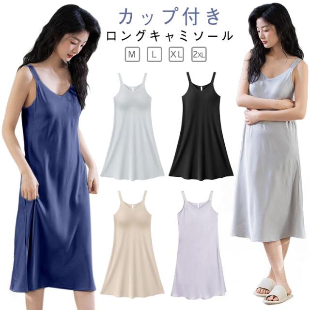 ワンピース ワンピース 夏 ロング丈 アイスシルク カップ付き パジャマ カップ付き パッド付き 薄手 涼しい レディース カップ付き ノースリーブ キャミソールワンピース 大きいサイズ ナイトガウン 部屋着 かわいい