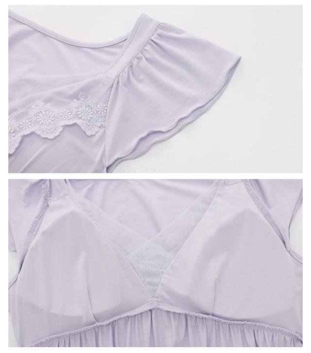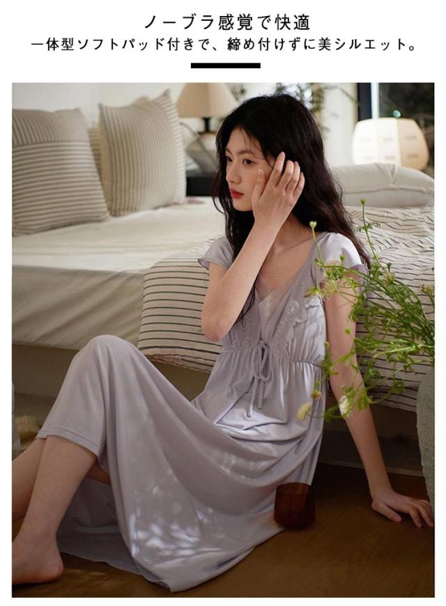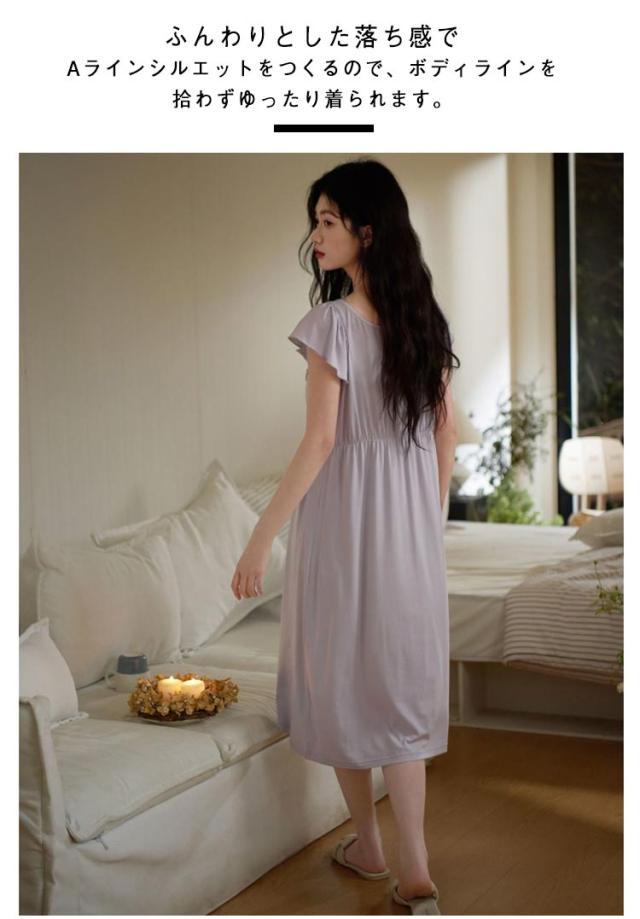半袖 カップ付き 春夏用 夏 薄手 コットン レディース モーダル カップ付きワンピース 部屋着 トラベルパジャマ パジャマ 綿 パット付き ルームウェア かわいい ミドル丈ワンピース ネグリジェ ルームウェア 膝丈 ワンピ 寝巻き ミドル丈ワンピース