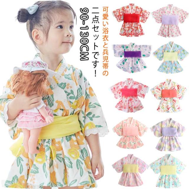 女の子 夏祭り 浴衣ドレス 浴衣 浴衣 キッズ 夏服 和装 2点セット 帯セット 子供服 和装 赤ちゃん 兵児帯付き ベビー 花火大会 祭り衣装 小学生 お祭り 可愛い