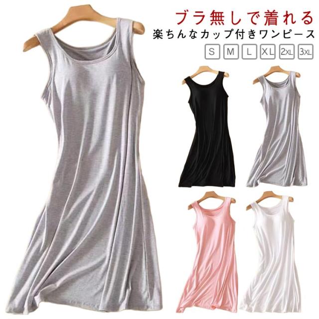 レディース ロング丈 ノーブラ パジャマ カップ付き ワンピース ワンピース ノースリーブ 部屋着 ルームウェア 1枚で着られる 大きいサイズ カップ付き 着心地楽 無地 春 夏 シンプル 無地 リラックスウェア 夏用 軽量 涼感