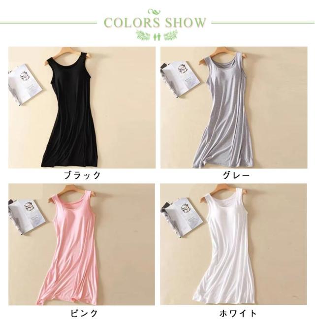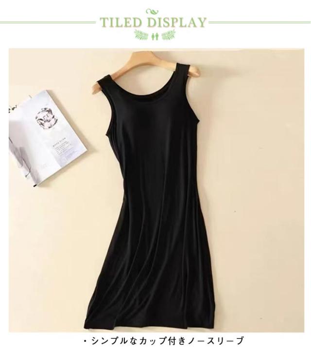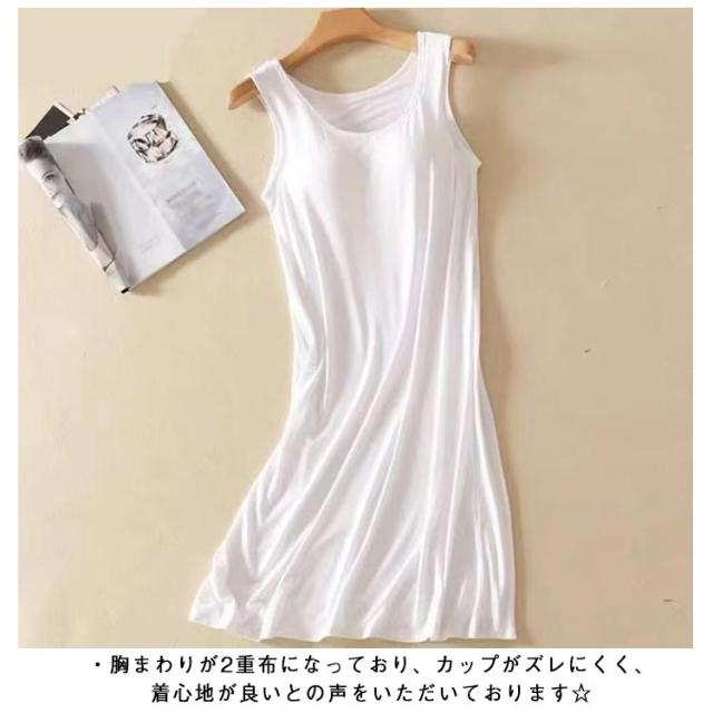 | ・ブラ無しで着れる楽ちんなカップ付きワンピース ・シンプルなカップ付きノースリーブ ・上品見えするひざ下丈のミディ丈ワンピース ・部屋着としても肌着としてもお使いいただけます。 ・胸まわりが2重布になっており、カップがズレにくく、着心地が良いとの声をいただいております☆ ・落ち着いた品のあるカラー展開です。 | |