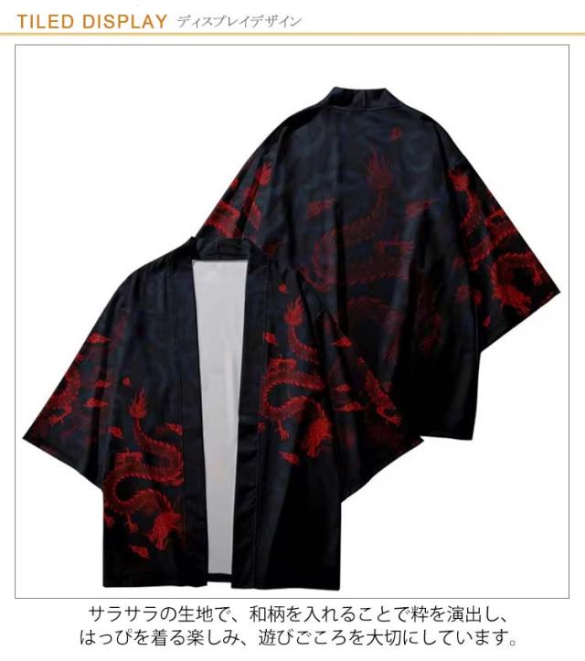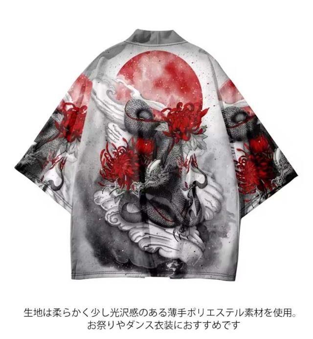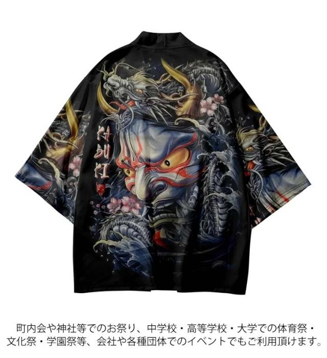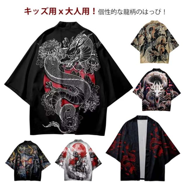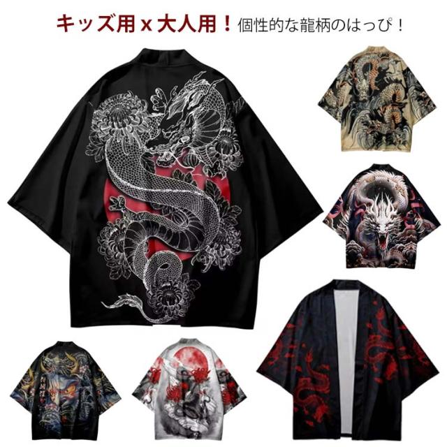| キッズ用x大人用!個性的な龍柄のはっぴ! サラサラの生地で、和柄を入れることで粋を演出し、はっぴを着る楽しみ、遊びごころを大切にしています。 ひらりと広がる裾がシルエットに動きを作ってくれます。 生地は柔らかく少し光沢感のある薄手ポリエステル素材を使用。 お祭りやダンス衣装におすすめです 日焼け防止や冷房対策に大活躍。日差しの強い時期には紫外線対策として、エアコンの効いた室内では冷房対策として幅広くご利用いただけます 町内会や神社等でのお祭り、中学校・高等学校・大学での体育祭・文化祭・学園祭等、会社や各種団体でのイベントでもご利用頂けます。 | |