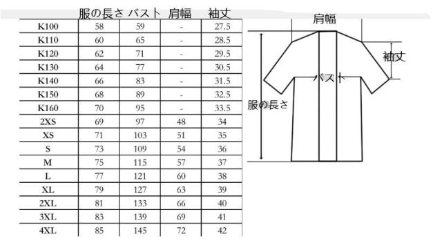 | サイズ | XXS XS S M L XL 2XL 3XL 4XL 100 110 120 130 140 150 160 |