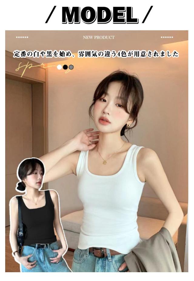 | フィット感の高いシルエットで美しいボディーラインを強調 ハイストレッチ性のリブ生地なので、動きやすさ的にも申し分なし キレイなデコルテ部分を見せる、エレガントなスクエアネック設計 脇部分をしっかりカバー、ブラチラ防止で安心感もアップ 飽きの来ないシンプルな無地デザインはコーデに馴染みやすい 定番の白や黒を始め、雰囲気の違う4色が用意されました レイヤードコーデにも必ず大活躍、いろんな着方が楽しめます | |