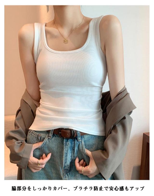 ノースリーブ レディース 夏 トップス タンクトップ ストレッチ タンクトップ スクエアネック 脇肉カバー リブタンクトップ 細身 袖なし スクエアネックタンクトップ デコルテ見せ 伸縮 薄手 夏 タンクトップ ブラック ホワイト 白