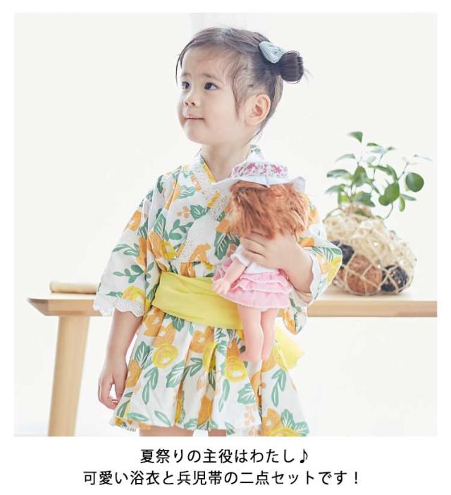 夏服 女の子 ベビー キッズ 浴衣 夏祭り ワンピース 兵児帯付き 子供服 帯セット 2点セット 和装 和装 浴衣 浴衣ドレス 花火大会 祭り衣装 小学生 お祭り 可愛い
