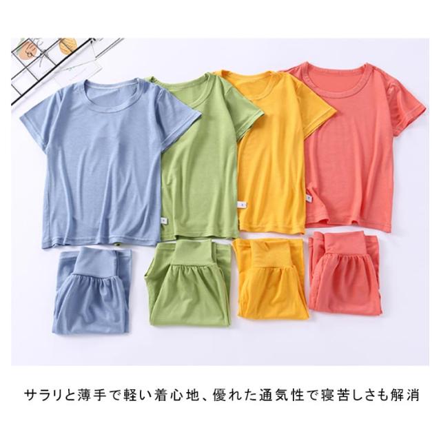 | キッズ パジャマ 夏用ルームウェア 90-140cm 吸汗速乾素材で汗をかいてもすぐに乾き、常に爽やかな着心地 サラリと薄手で軽い着心地、優れた通気性で寝苦しさも解消 パンツはウエスト総ゴムで着脱がラク | |