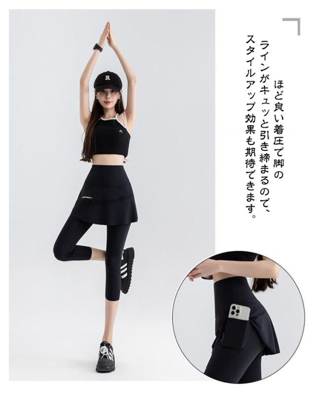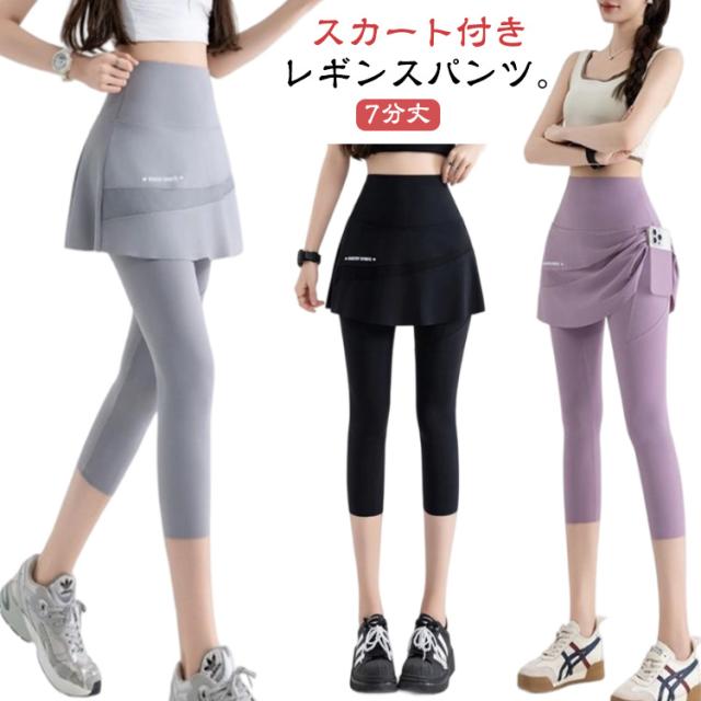 ヨガパンツ 7分丈 ジム ヨガレギンス レギンス ヨガウェア スカート一体型 速乾 スカッツ ホットヨガ ピラティス ヨガ レディース フィットネス パンツ スポーツウェア ジムウェア フィットネスウェア 吸汗 スカート付きレギンス 伸縮性 プチプラ おしゃれ かわいい