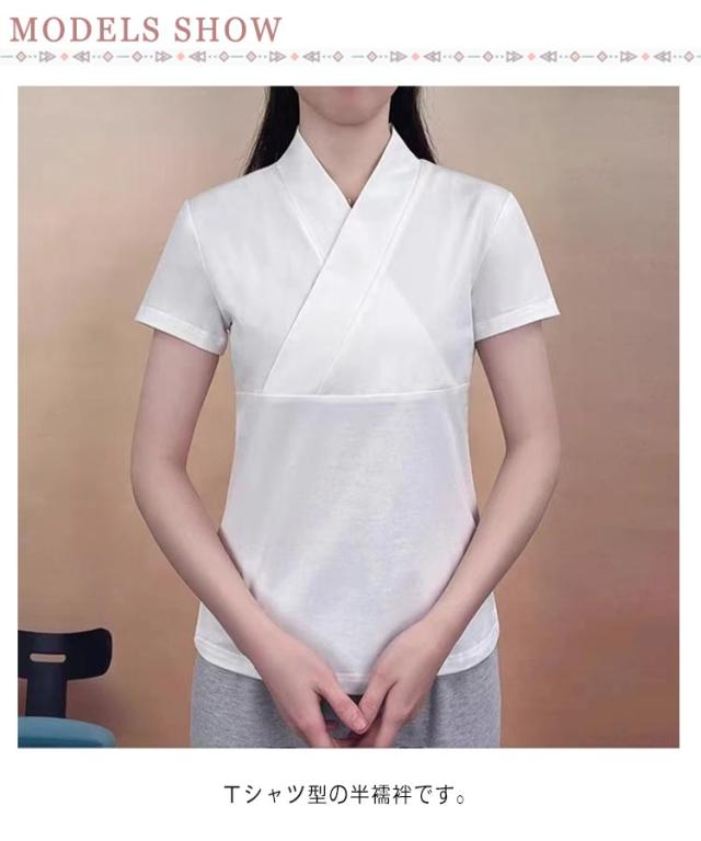 半袖 白 襟付き 半 肌襦袢 襦袢 半襦袢 肌襦袢 Tシャツ 半衿 うそつき 半襟 夏 和装 肌着 さらし おしゃれ 大人 女性 半衿付き半襦袢 着物スリップ インナー 速乾 快適 無地