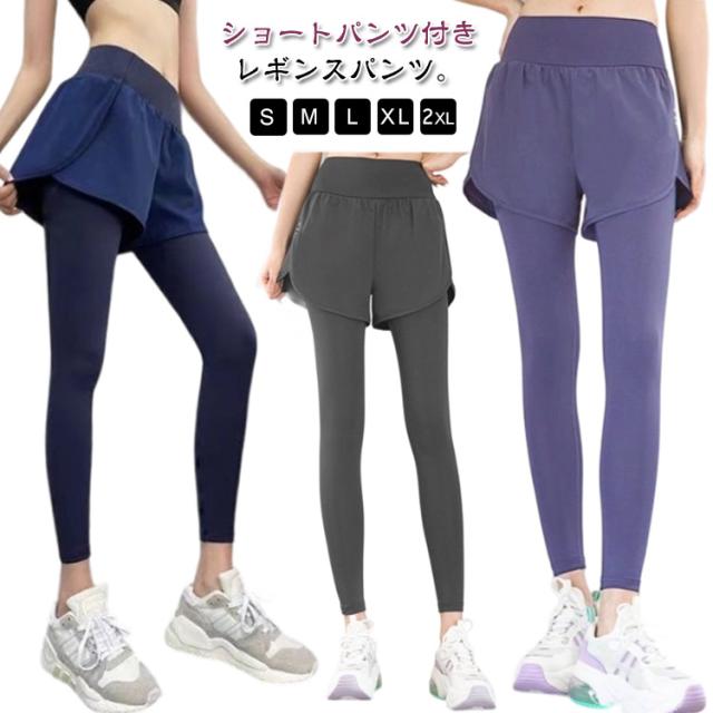 ヨガウェア レディース レギンス ショートパンツ付き ピラティス レギンス ショートパンツ付き スカッツ ヨガパンツ ホットヨガ ヨガ ショートパンツ一体型 ジム フィットネス パンツ スポーツウェア ジムウェア