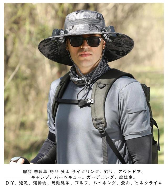 日よけ帽子 日よけ帽子扇風機付き 帽子扇風機付き 56cm〜60cm キャンプ 登山 左右 扇風機2つ付き帽子 つば広 ボーイスカウト 扇風機2つ付き 帽子 キャップ UVカット アウトドア 自転車 暑さ対策 日よけ 涼しい 日よけ帽子 紫外線対策 農作業 2ファン付き