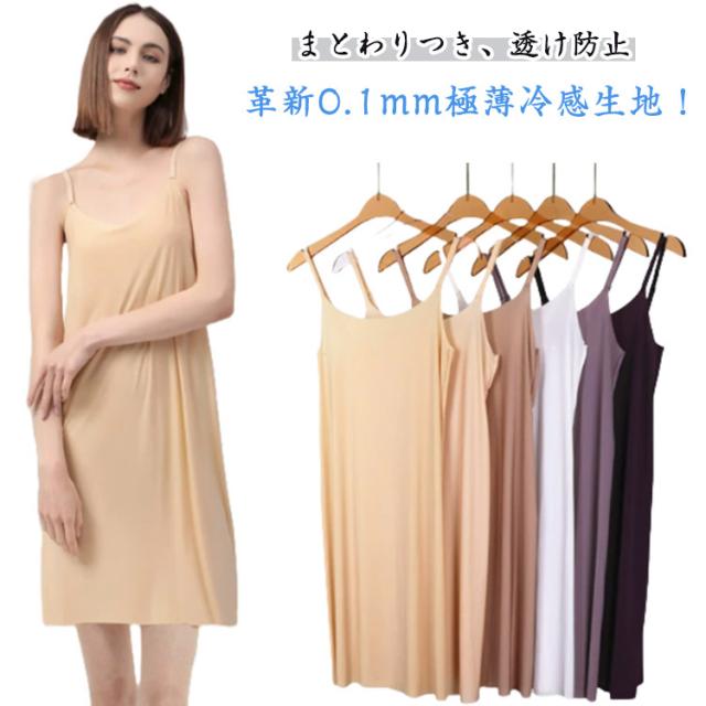 冷感スリップ ひんやり 吸汗速乾 素肌さらり クール 0.1mm極薄冷感 透け防止ペチコート 涼しい キャミソールワンピース インナー ひびきにくい レディース肌着 キャミワンピ 肩紐調節 静電気防止 無地 抗菌防臭 ストレッチ 薄手