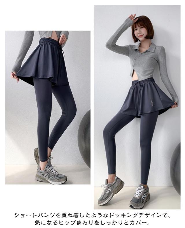 ショートパンツ付きレギンス ショートパンツ付きレギンス ホットヨガ イージー ジム ヨガパンツ レギンス ショートパンツ一体型 ヨガレギンス レディース ピラティス ヨガ スカッツ フィットネス パンツ スポーツウェア
