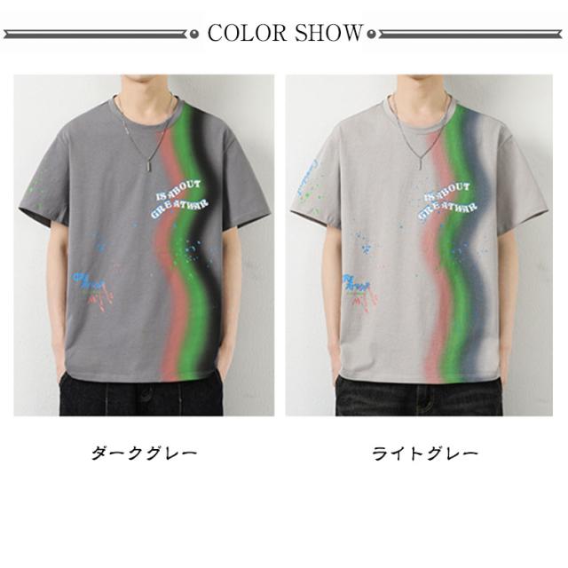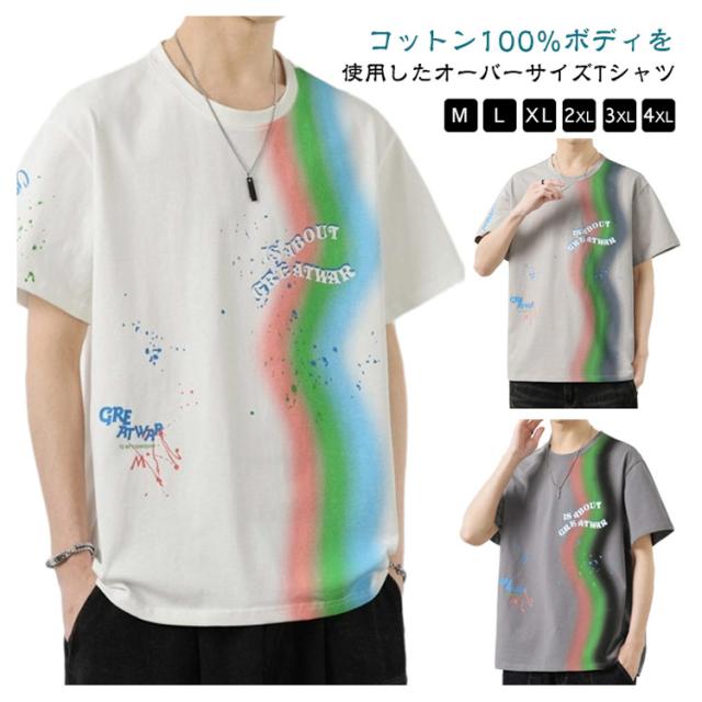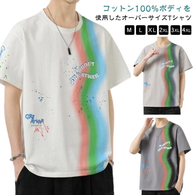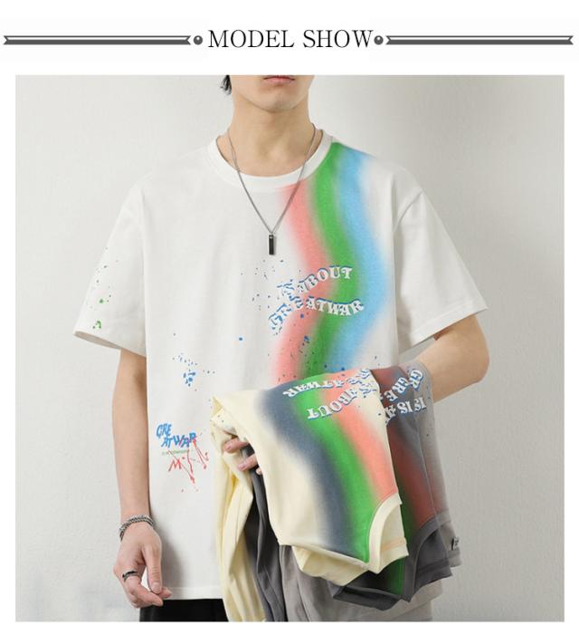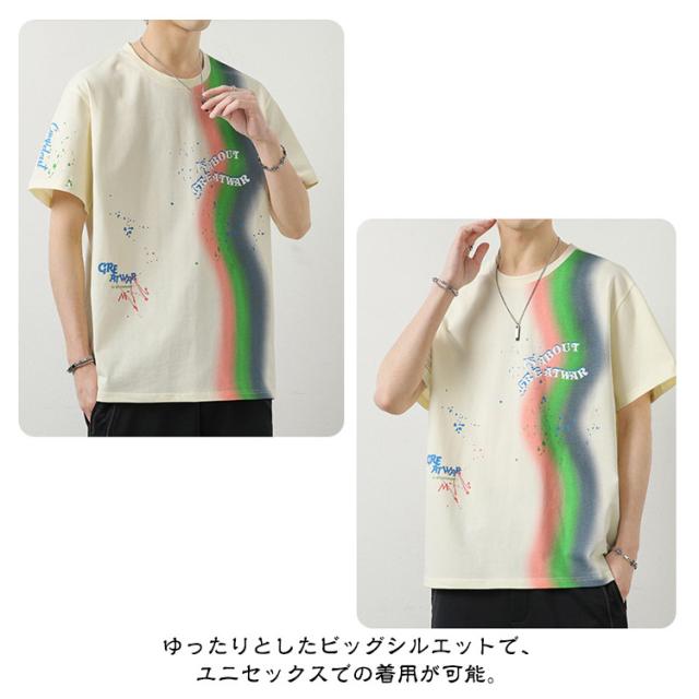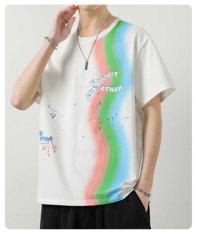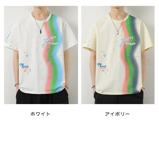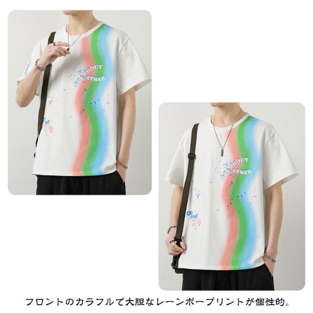 カットソー Tシャツ コーデ 綿 アメリカン カジュアル メンズ メンズ トップス 半袖 男子 男性 おしゃれ 学生 ファッション 夏 メンズ ストリート オーバーサイズ ビッグシルエット レーンボー 虹 カラフル 夏服 夏物 韓国風 5分袖 tシャツ 白 グレー