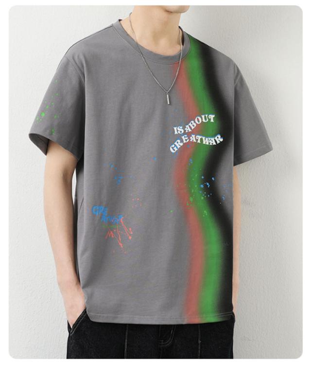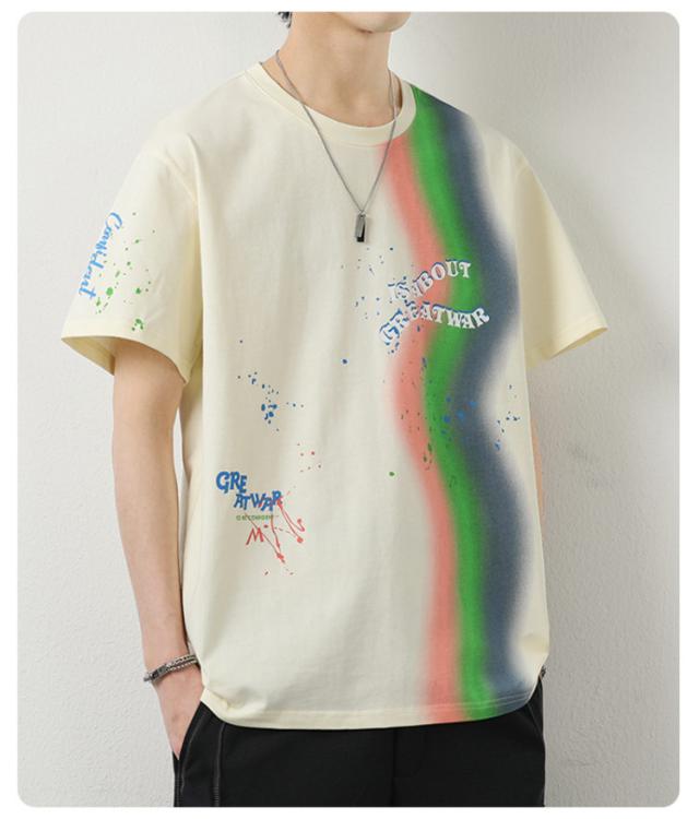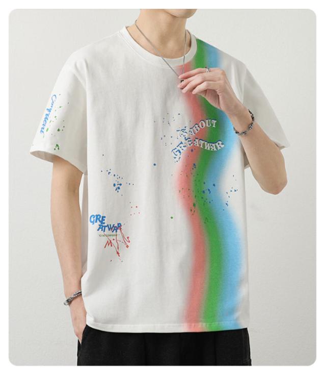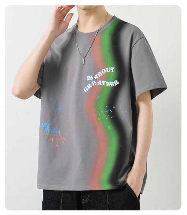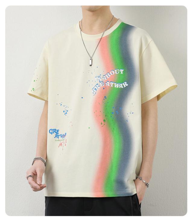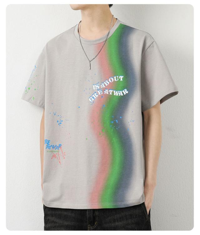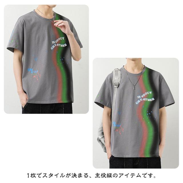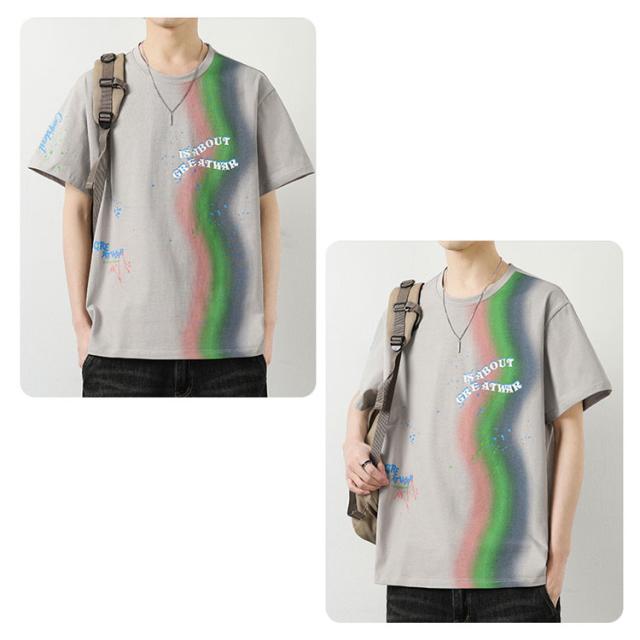 カットソー Tシャツ コーデ 綿 アメリカン カジュアル メンズ メンズ トップス 半袖 男子 男性 おしゃれ 学生 ファッション 夏 メンズ ストリート オーバーサイズ ビッグシルエット レーンボー 虹 カラフル 夏服 夏物 韓国風 5分袖 tシャツ 白 グレー