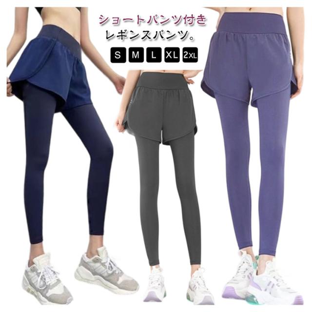 ショートパンツ一体型 レギンス レディース ヨガレギンス ヨガパンツ ショートパンツ付き レギンス ヨガウェア スカッツ ホットヨガ ピラティス ヨガ ジム フィットネス パンツ スポーツウェア ジムウェア