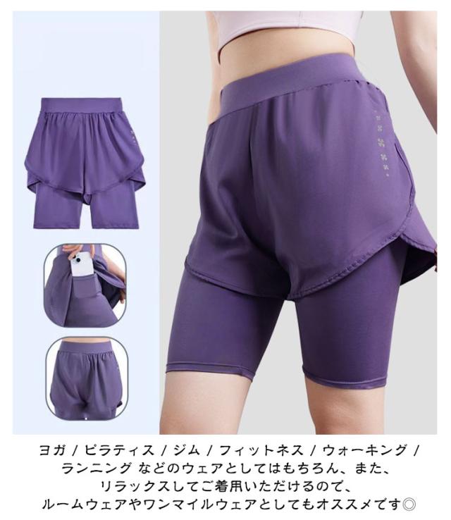 ヨガウェア ヨガウェア ホットヨガ ヨガレギンス ショートパンツ付き ヨガパンツ ヨガ ショート丈 パンツ ピラティス 5分丈 ジム フィットネス レディース ショートレギンス ショートパンツ一体型