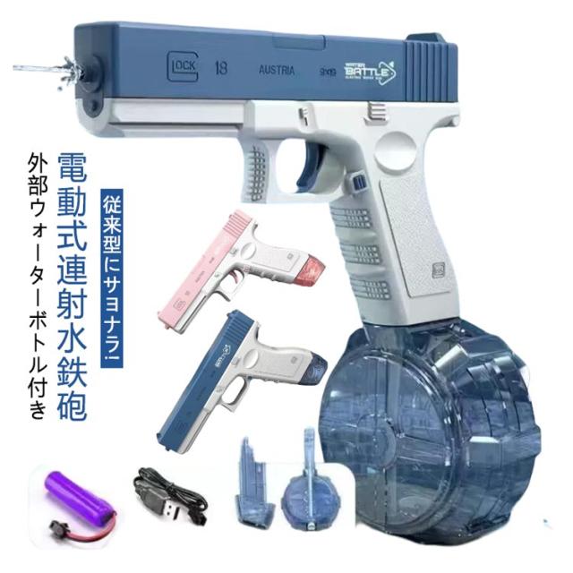 | 電動式連射水鉄砲 外部ウォーターボトル付き 【水遊びに最適】スモールボディ大容量がこの水鉄砲の最大の特徴! グリップは滑りにくい設計になっています。だから、大人でも子供でも簡単に使用できます。海辺やビーチ、プールで友人や家族と一緒に、家族で楽しく交流するのに適しています。また、猫や他のペットの管理にも最適で、特定のものに触れないように警告することができます。 【電池式水鉄砲】 水鉄砲は高級ABS樹脂製で、JPトイ品質基準に適合しています。電動水鉄砲のバッテリーはUSB充電に対応しているので、連続使用も可能です。50分の長電池寿命で、夏の楽しみが無限に広がります! 大容量3.7Vバッテリー1本(約25~30分、2本は約50分 ※最大値)、USB充電器が付属しています。単一電池の充電時間は110分です。 【従来型にサヨナラ! 】 ワンタッチ発射の電動水鉄砲なら、もう手動で加圧する手間はありません。トリガーを引くたびに、前代未聞の精度で強力な水しぶきを放ちます。水鉄砲の射程距離は8~10Mと超長距離なので、このワクワクする季節に、お友達やお子さんと水鉄砲バトルで盛り上がりましょう。 【万が一に備え、予備クリップを用意しておきましょう 】 434CC+58CCのダブルウォータータンクを搭載した電動水鉄砲で、戦況を好転させましょう 水を入れると420回+58回連続発射可能! 仲間との戦闘中に水が足りなくなったら! 素早く予備のクリップ(58cc)を持って反撃開始! 【ピンクとブルーの2種類のキャンプ】 このウォーターガンは、ピンクとブルーの2色があり、水上バトルで異なる陣営を見分けやすくなっています。(注)この水鉄砲は2つの防水層で設計されており、短時間であれば水に浸すことができます。しかし、長時間水に浸さないでください! | |