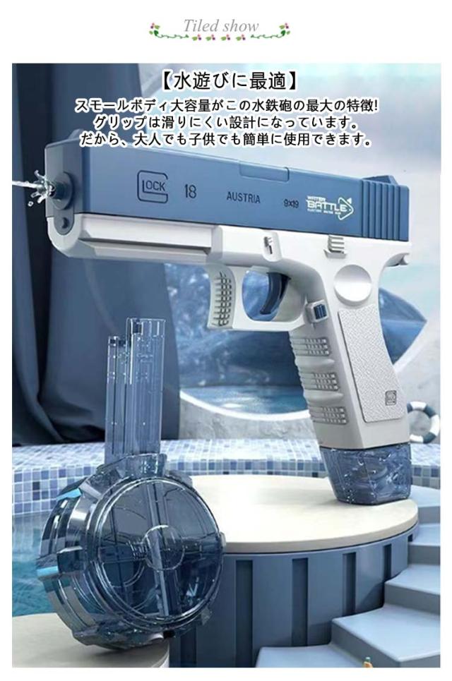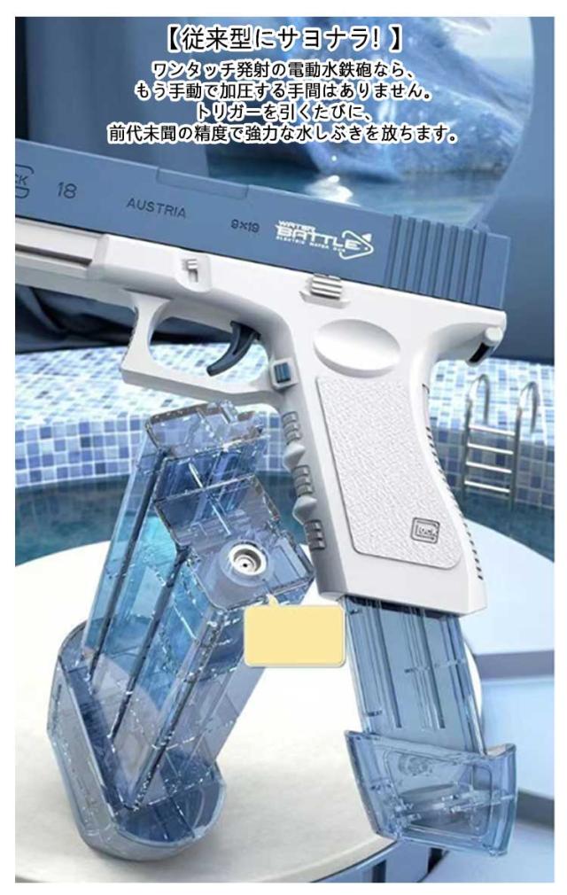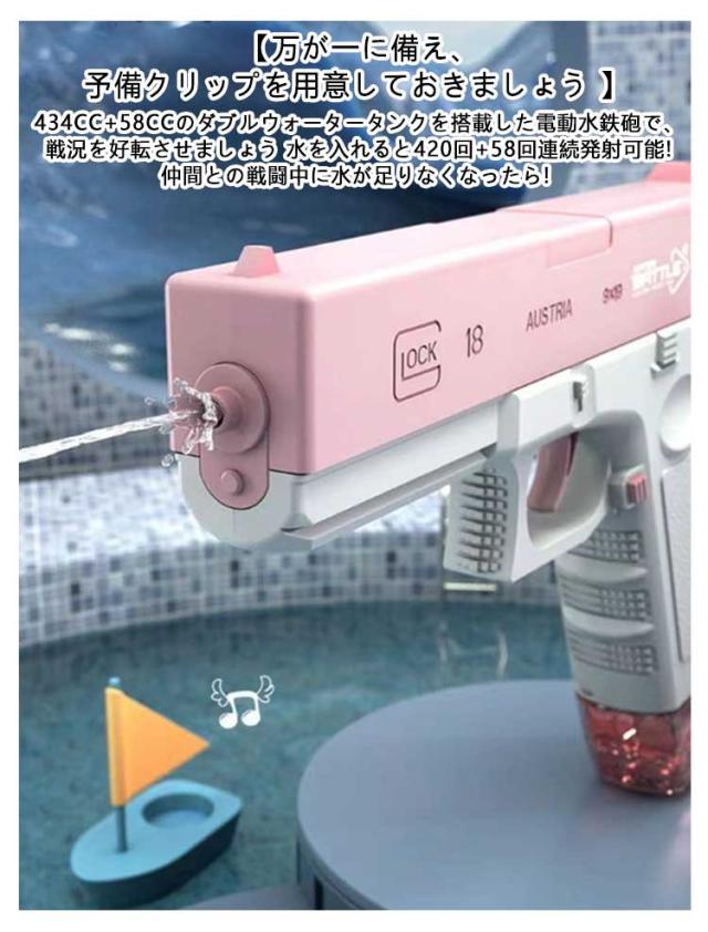 水鉄砲 超強力飛距離 電動式連射水鉄砲 高速連続発射式 自動ウォーターガン 子供用ウォーターピストル ボトル付き 電気噴出ガン 容量434cc+58cc 電動水ピストル 水鉄砲合戦 夏祭り 子供 大人 水鉄砲 お風呂