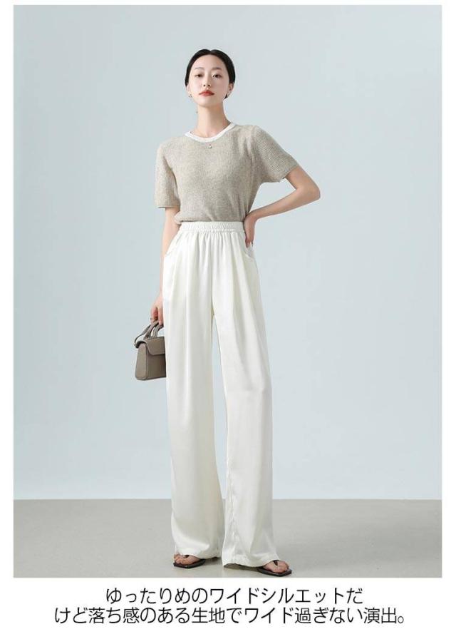 | 【エレガントなジャカード柄で、華やかな印象】【サテン調ワイドパンツ】【全4色】 高級感溢れるジャカード柄サテンワイドパンツ 光沢感が程よく抑えられたサテン素材を採用し、なめらかで艷やかで垂れ感が良い。 ジャカード柄が個性を引き立て、周りに差をつけるスタイルに仕上げます。 ウエストタック仕様で華やかさアップ! ゆったりめのワイドシルエットだけど落ち感のある生地でワイド過ぎない演出。 シンプルにTシャツ合わせも今っぽいムードな着こなしに♪ クラシックで上品な雰囲気はオトナの魅力を引き立たせる優れもの。 オフィスやカジュアルな日常使いはもちろん、旅行やアウトドア、デートなどさまざまなシーンに最適。 | |