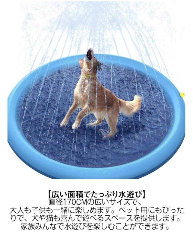 | 【広い面積でたっぷり水遊び】直径170cmの広いサイズで、大人も子供も一緒に楽しめます。ペット用にもぴったりで、犬や猫も喜んで遊べるスペースを提供します。家族みんなで水遊びを楽しむことができます。 【畳めばA4サイズ】折り畳むとA4サイズになるので持ち運びがラクラクのコンパクトサイズに。 【簡単お片付け】終わった後は、水を抜いて軽く流し、乾かすだけ。組み立て作業もないのでお片付けもラクラク。 【丈夫なPVC素材】表面に凹凸加工だされたPVC素材で、傷がつきにくく、丈夫で滑りにくいように作られています。 【約0.4mmの厚み】0.43mmの厚みで、より厚いPVC素材を使用しています。厚手のマットは耐久性に優れています。 【滑り止め加工】マット表面には凹凸の滑り止め加工がされています。 【5mmのワイド圧着】マットの箸の接着幅は、約5mmありますので、接着が剥がれにくく安心してお使いいただけます。 【側面についたバルブ】下側側面についたバルブは、水道から流れる水圧の力をそのまま噴水に伝えやすくなっています。 【噴水の高さ調節】水量で、噴水の高さを調節するので蛇口の調節で簡単に噴水の高さ調節ができます。 | |